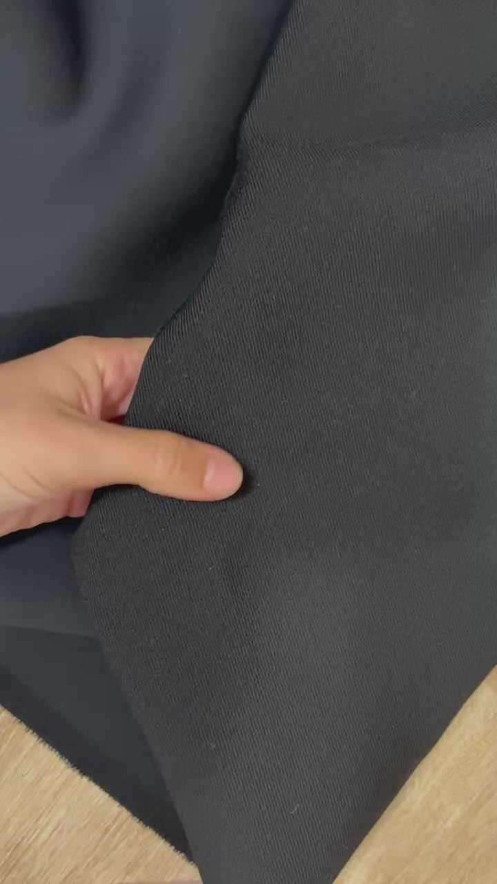 Sergé de laine thermocollé parfait pour des jupes épaisses ou encore des bombers. Tissu 100% laine très élégant et avec un tombé exceptionnel.