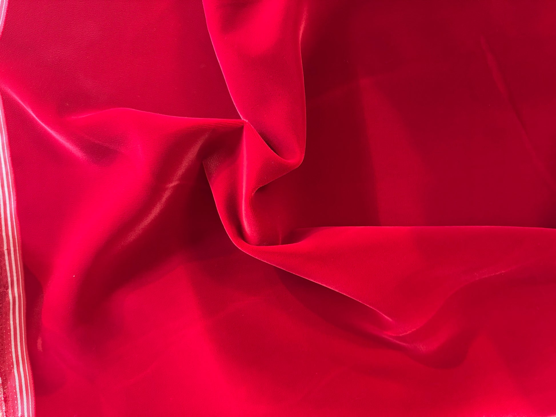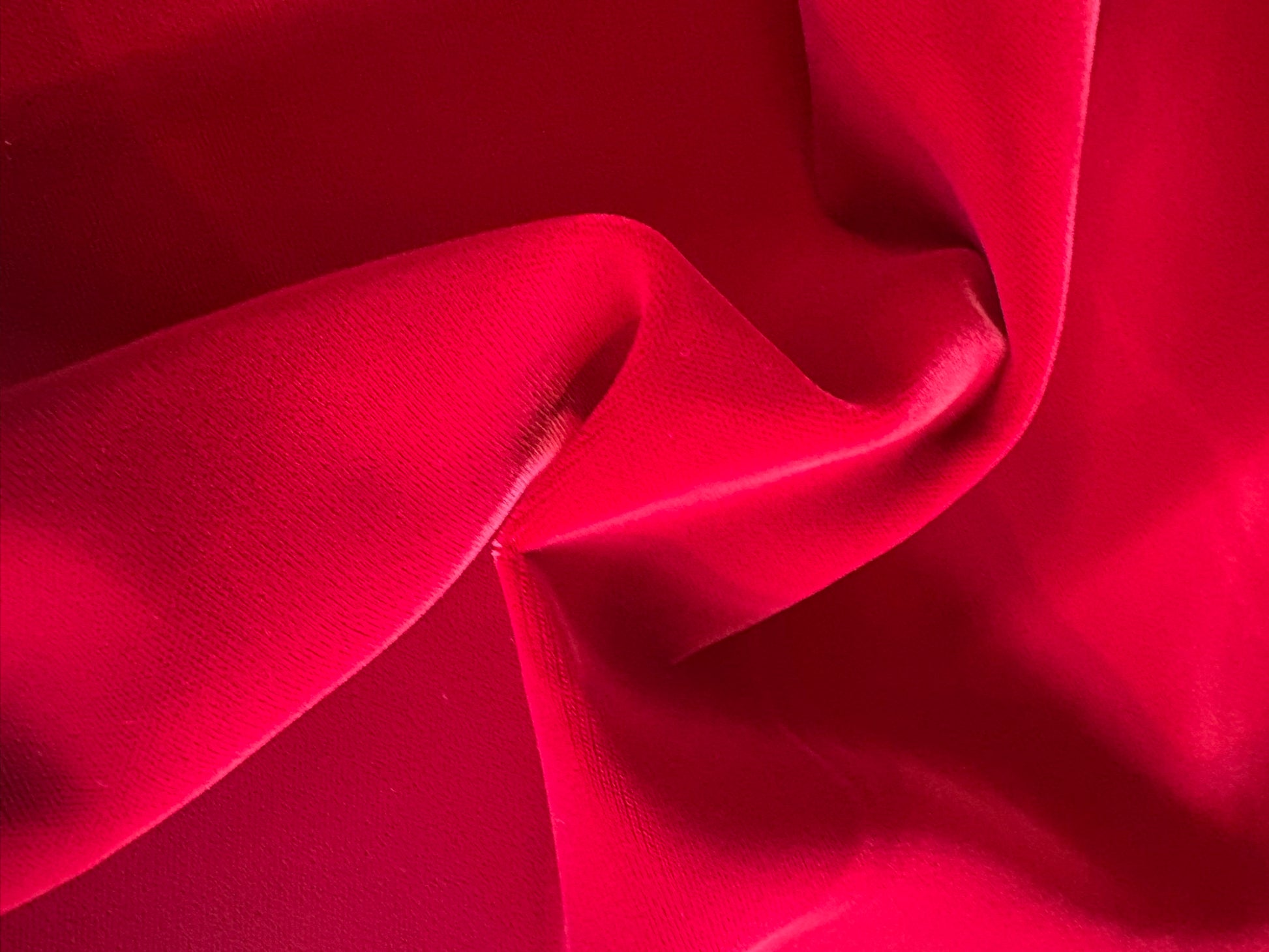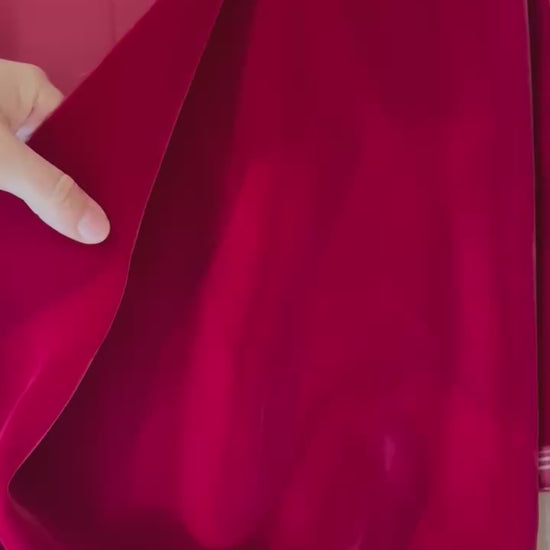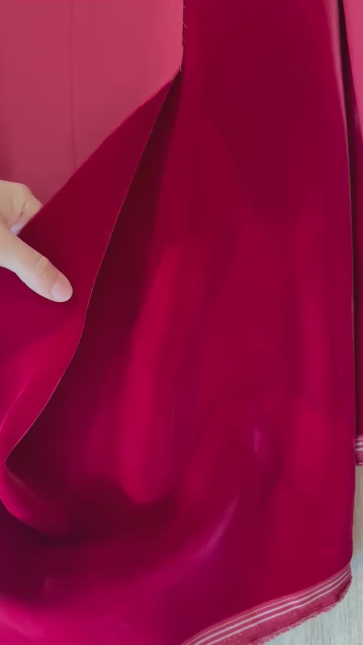 Magnifique velours ras d'une Maison de Luxe, couleur rouge cerise intense, avec un tissage japonais d’une qualité exceptionnelle.